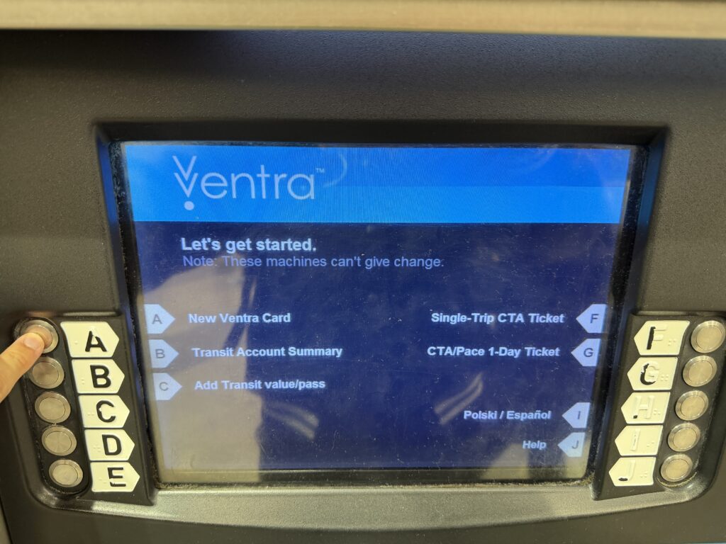 まず、多くの方が初めて Ventra カードを購入されると思うので、(A) New Ventra Card を選択してください。
