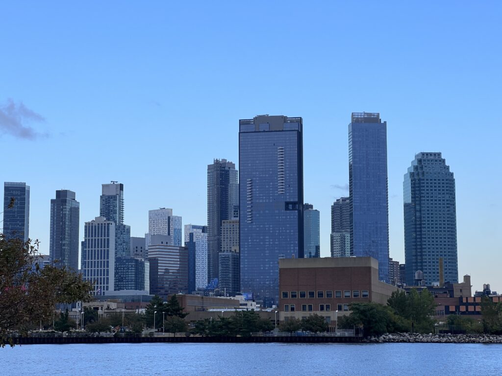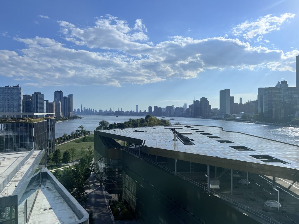 マンハッタンの景色が非常によく見えます。ビルの眺め、最高ですね。手前に見えてるのは Cornell Tech (コーネル工科大学)というコーネル大学の大学院キャンパスです。