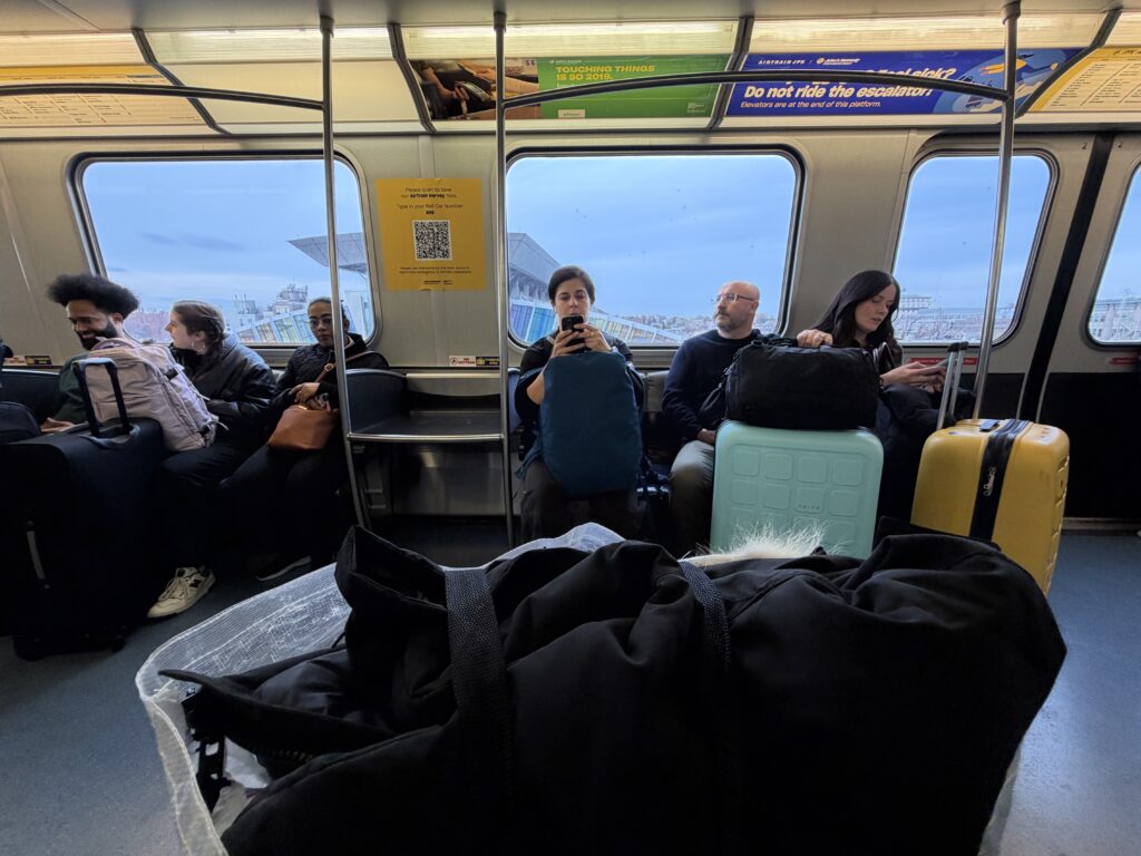 ここではその乗り換えについて説明します。上で説明した通り、電車を降りたあとに改札で料金 $8.50 (2025年現在) を支払います。