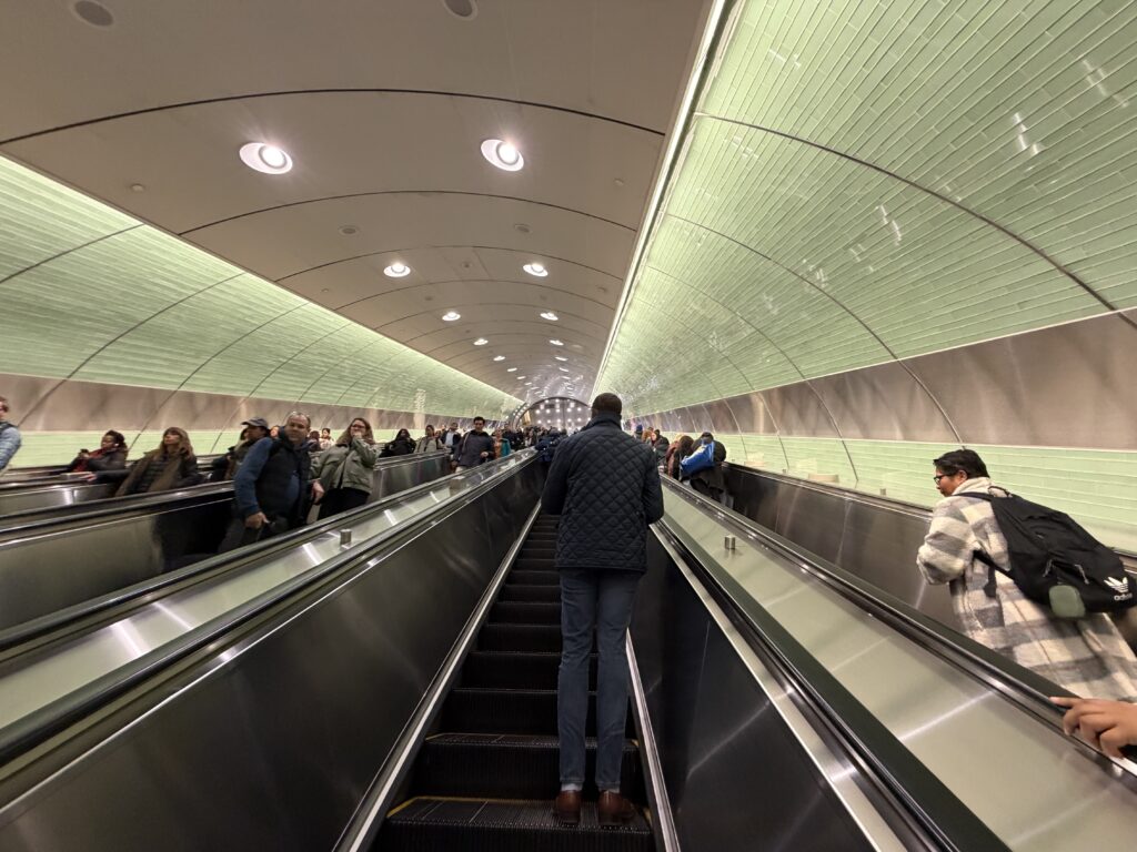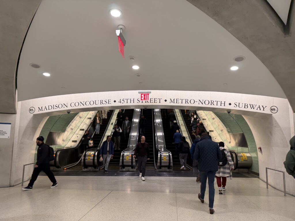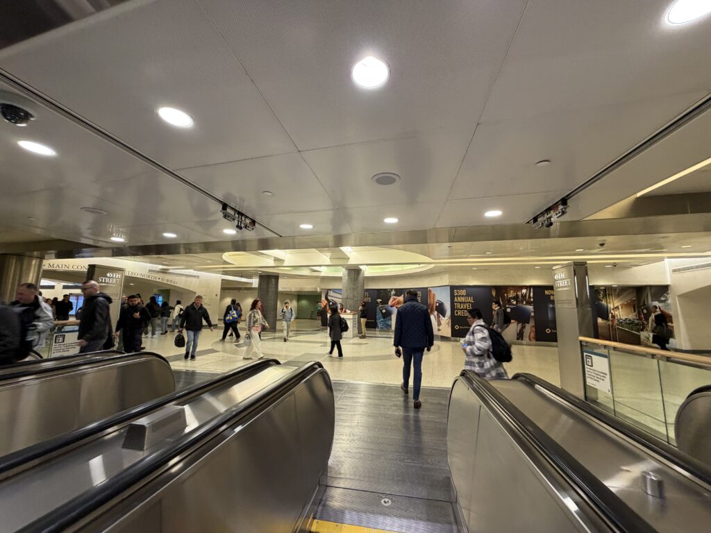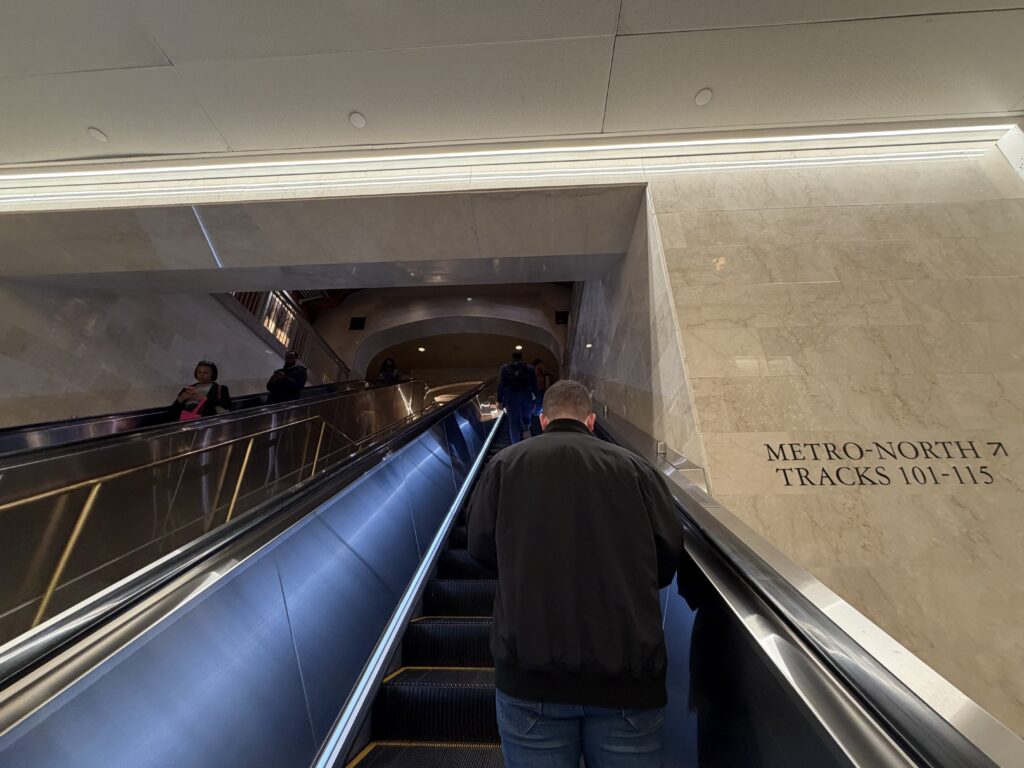 ドアを出るとエスカレーターに乗ります。"Metro-North" と書いてあるので安心ですね。