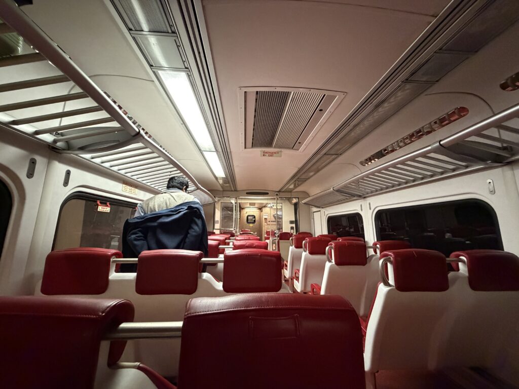 車内もこのように暗いことがあります。気にせず乗って待っておきます。