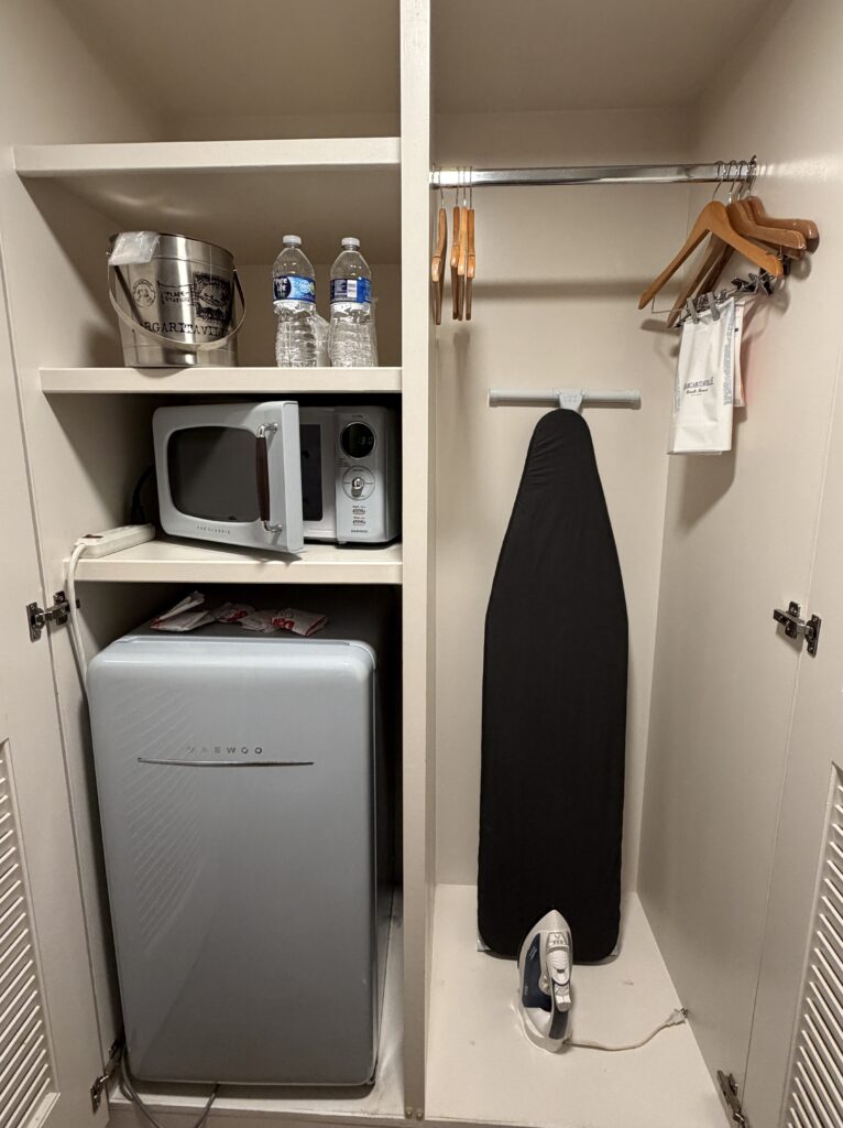 ミネラルウォーター、電子レンジ、冷蔵庫、アイロンなどいろいろ揃っています。