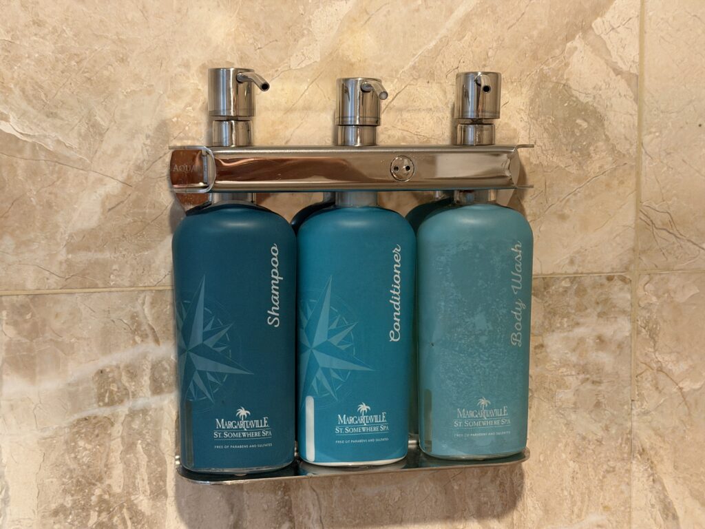 シャワーについているのは、シャンプー・コンディショナー・ボディソープです。
