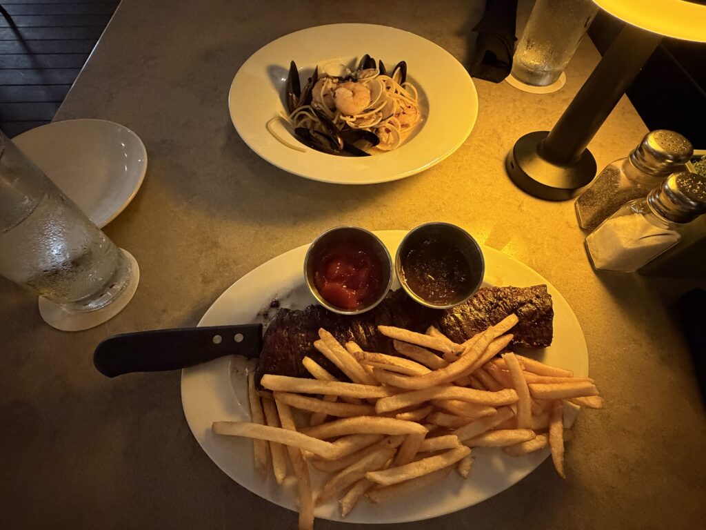 ステーキとパスタを注文しました。パスタは値段の割に量が少ないと思いました。